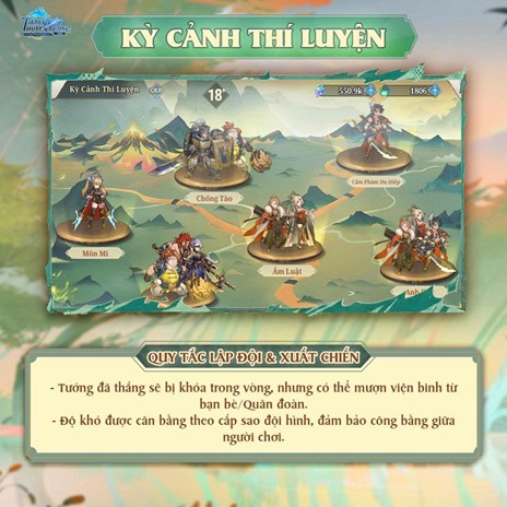 - Tính năng Kỳ Ngộ: Có thể dùng Ảo Tinh để giảm độ khó của ải nếu gặp bế tắc.
