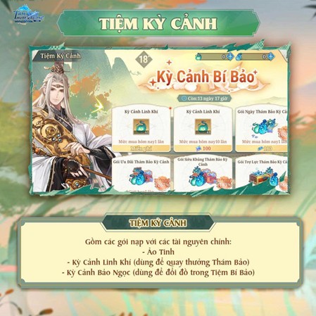 - Kỳ Cảnh Linh Khí (dùng để quay thưởng Thám Bảo)