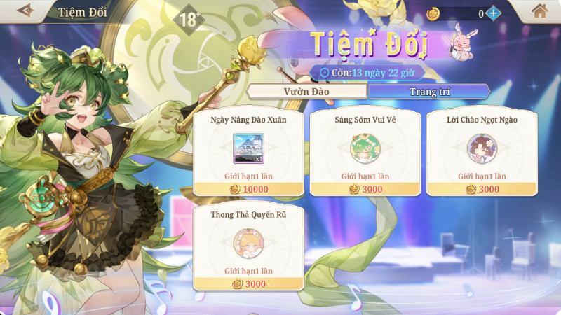 • Xu Đào Viên là loại tiền tệ chính để đổi vật phẩm trong sự kiện này, sau khi kết thúc sẽ tự động đổi sang Vàng.