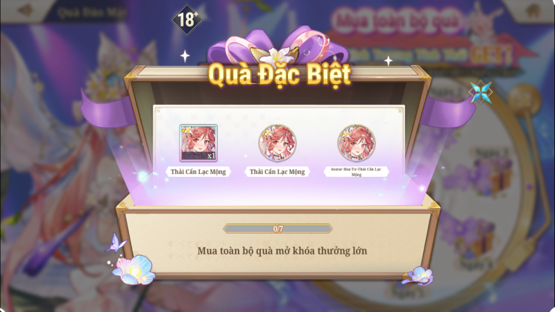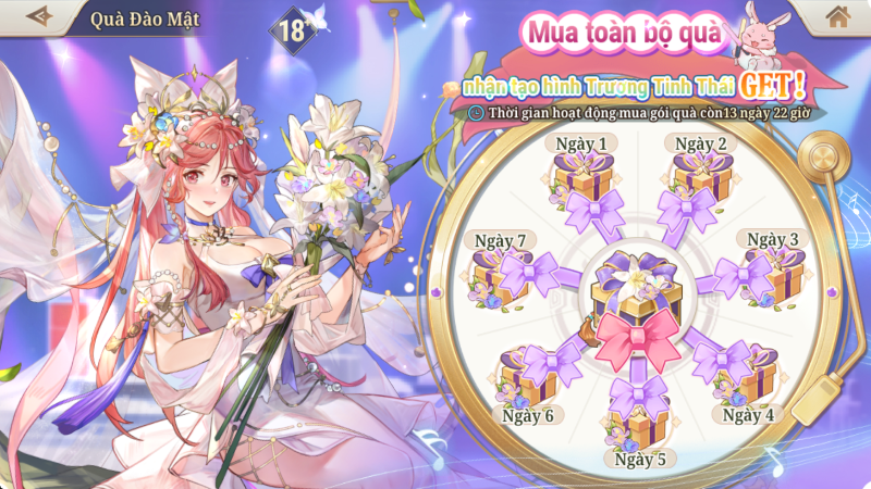 Quà Đào Mật dành cho các fan của Nhóm Nhạc Đào Viên gồm 7 gói có giá trị đồng nhất là 180 Huyễn Tinh. Khi mua toàn bộ quà sẽ mở khóa phần thưởng siêu xinh đẹp: Combo tạo hình Thải Cẩn Lạc Mộng - Trương Tinh Thái.