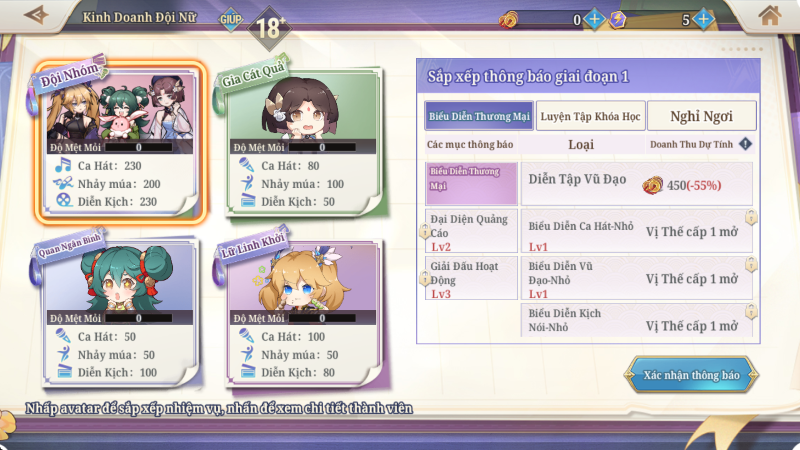 ¤ Nhiệm vụ: Hoàn thành các nhiệm vụ được giao thông qua các mục [Đội Nữ Vận Hành] và [Lưu Diễn Nhóm].
