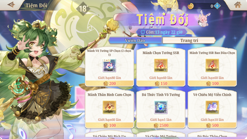 • Người chơi ở các server mới khuyến khích đổi Mảnh Võ Tướng SP trước.