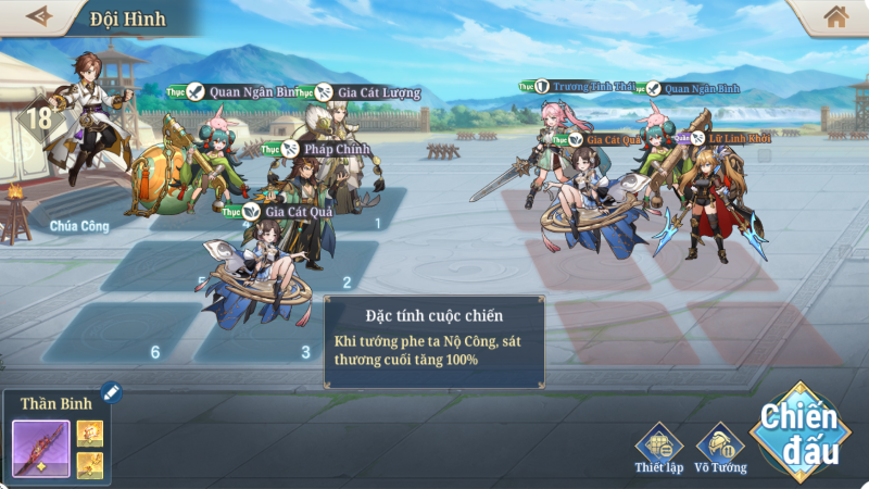 • Các Chúa Công có thể căn cứ vào đội hình của mình để kết hợp với hiệu quả có lợi phù hợp để từ đó đạt được sát thương chiến đấu mỗi vòng cao hơn.