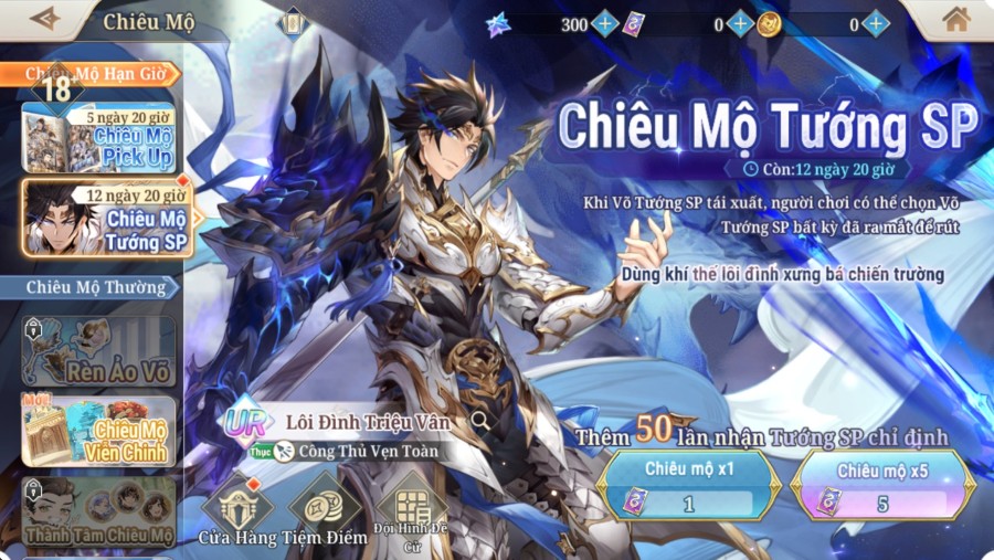 Trong thời gian hoạt động, sử dụng Vé Chiêu Mộ SP có thể chiêu mộ được võ tướng SP Lôi Đình Triệu Vân.