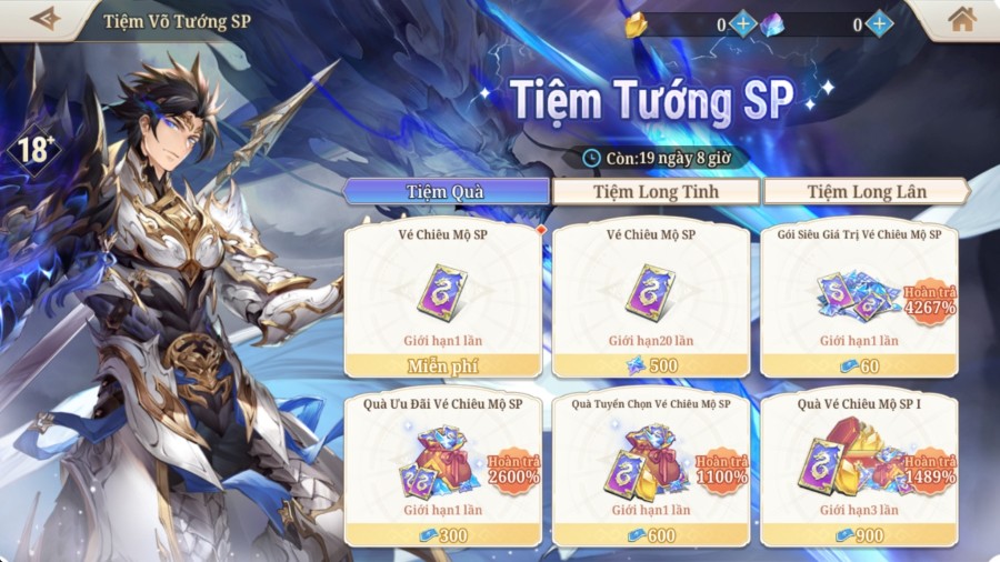 Vé Chiêu Mộ SP có thể nhận miễn phí 1 vé và đổi 20 vé trong Tiệm Tướng SP, ngoài ra có thể nhận thông qua việc trải nghiệm cốt truyện của võ tướng SP.