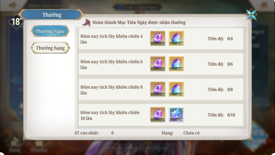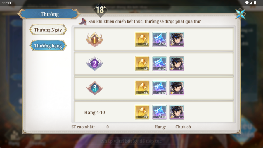 Dựa vào điểm thưởng đạt được, sau khi khiêu chiến kết thúc, hệ thống sẽ gửi phần thưởng tương ứng qua thư.