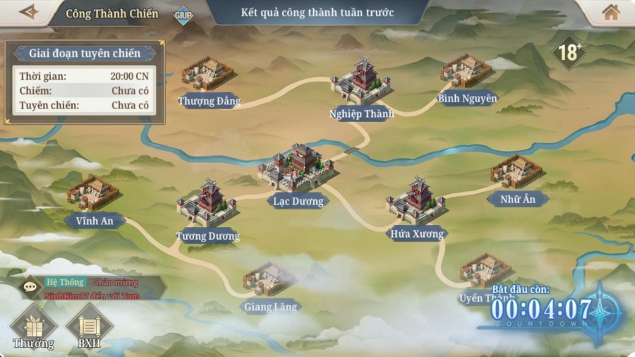 • Quân Đoàn đạt Lv2 có thể tuyên chiến.