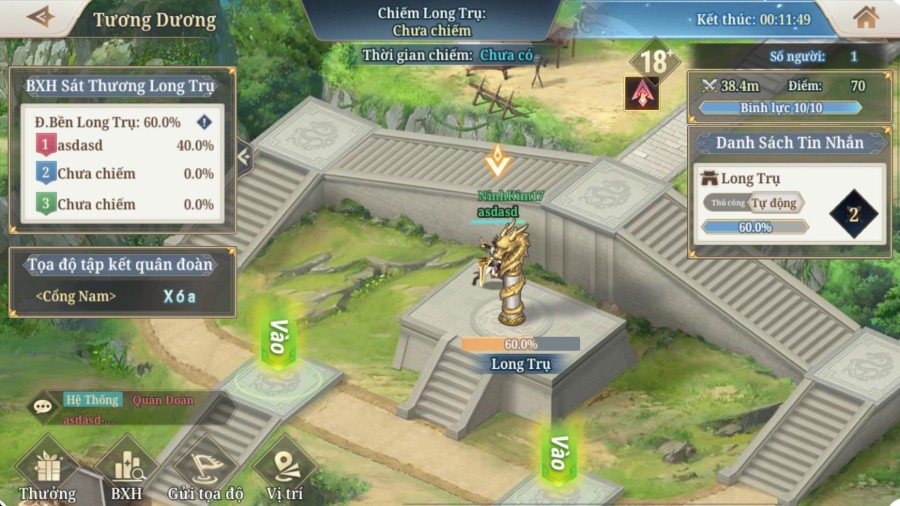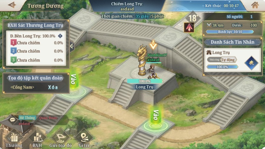 • Khi Độ Bền của Long Trụ về 0, quân đoàn gây sát thương cao nhất cho Long Trụ sẽ tạm thời giành quyền sở hữu. Quân đoàn cần phòng thủ Long Trụ trong 5 phút để chiếm được thành trì.