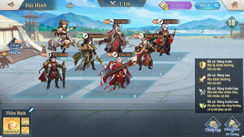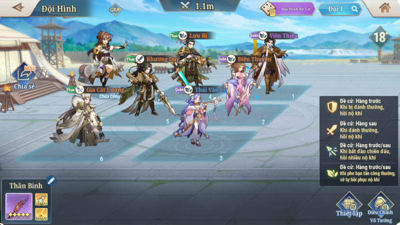 ⇒ Điểm Yếu: Đội hình phụ thuộc vào tốc độ hồi nộ, không có võ tướng tăng nộ trực tiếp.