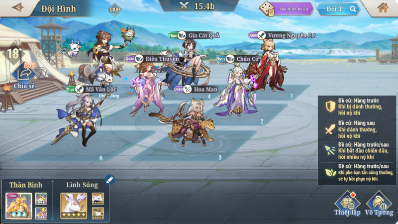 • Hàng sau: Gia Cát Quả, Điêu Thuyền, Mã Vân Lộc