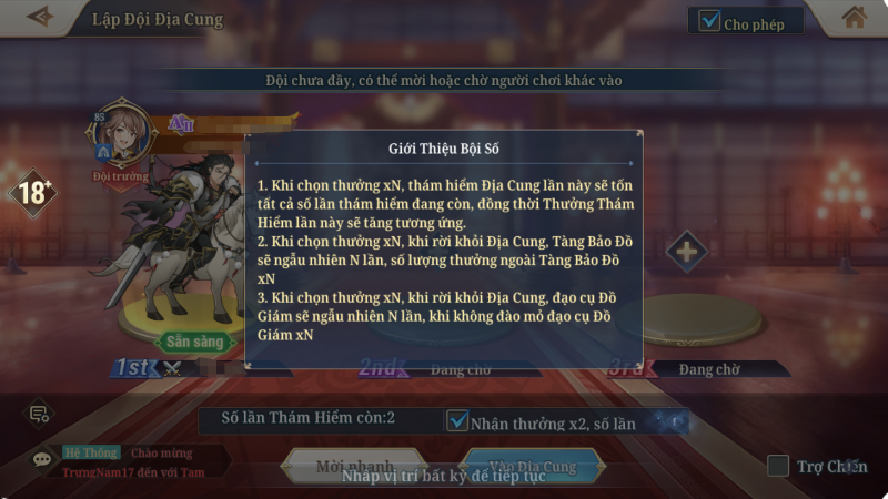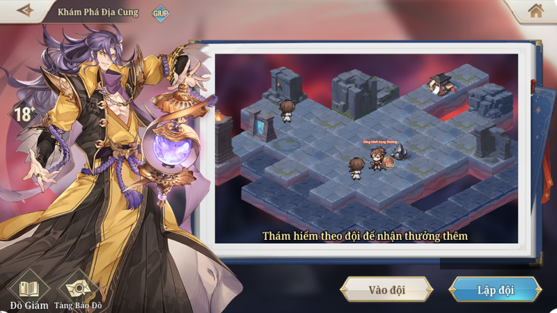 • Khám Phá Địa Cung là hoạt động tổ đội PvE tối đa 3 người, ba người tổ đội khám phá địa cung nhận được thưởng tăng thêm.