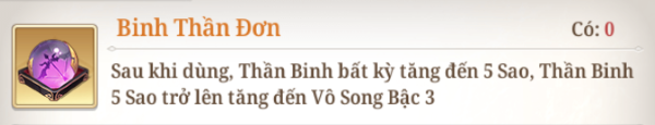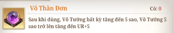 • Cấp sao ban đầu của Võ Tướng và Thần Binh tương ứng với cấp sao của Võ Tướng và Thần Binh của người chơi.